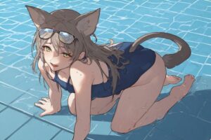By the poolside, Nina crawls like a playful cat in her swimsuit, slow smiles and cheeky energy making every movement a fun, whimsical performance under the sun.