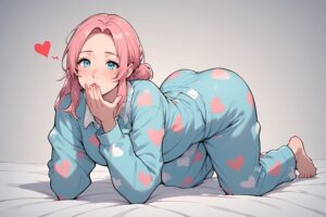 In her long-sleeve heart-themed terno pajama outfit, Nina crawls across the floor with playful charm and style, ending her whimsical adventure by blowing a cheerful kiss. Fun, cute, and full of personality!